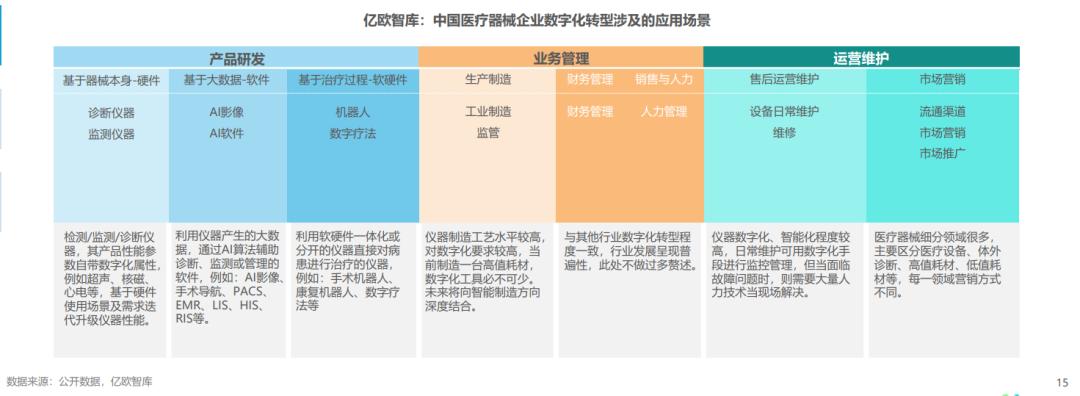 在产品研发层面,高值医疗器械在临床使用过程中产生大量临床使用数据,包括基于产品本身的参数数据,和基于检查检验的临床数据,这两方数据形成数字化转型的天然优势。一方面需要收集运行参数数据提升机械性能,另一方面可以基于数据本身,形成新产业链条,例如:人工智能辅助诊断系统。