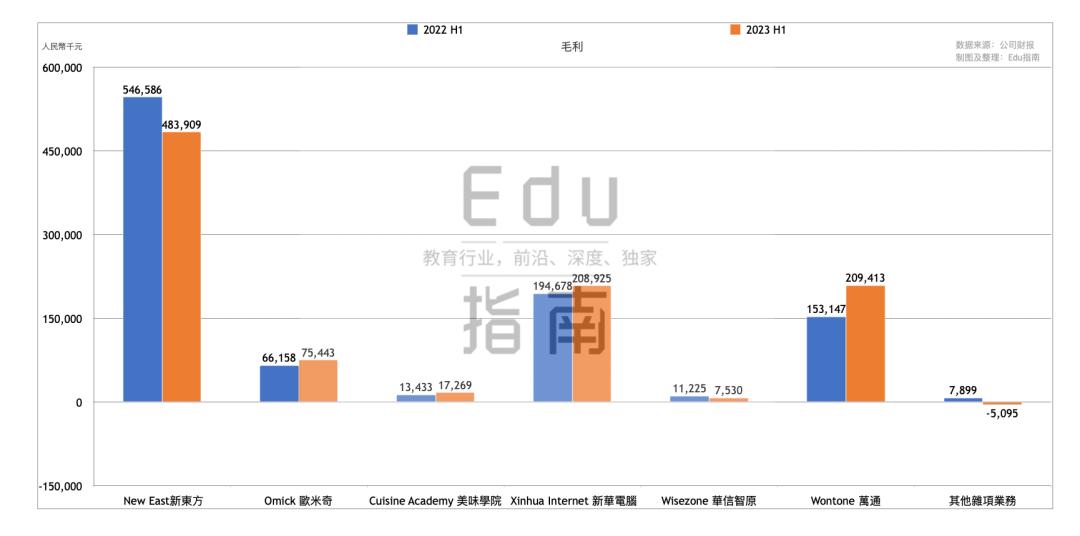 即上半年美味学院、万通汽车教育毛利增幅较高。