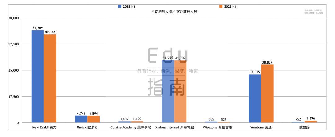 根据财报上半年中国东方教育新培训人次/新客户注册人数为84552人,同比上一财年同期的70445人,增长20%。截至上半年该公司平均培训人次/平均客户注册人数为147276人,同比上一财年同期的143566人,增长3%。