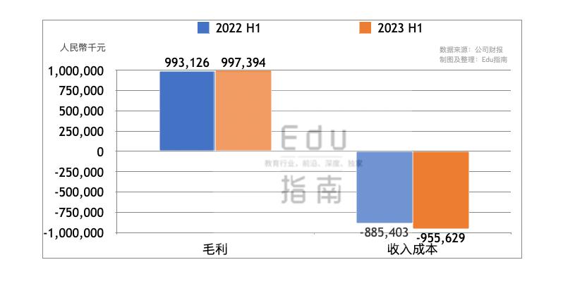 2023年上半年该公司收入成本为9.6亿元,同比上一财年同期的8.9亿元,本期收入成本增幅为8%。上半年毛利为10亿元,同比增长0.4%。本期收入成本增幅高于毛利增幅。