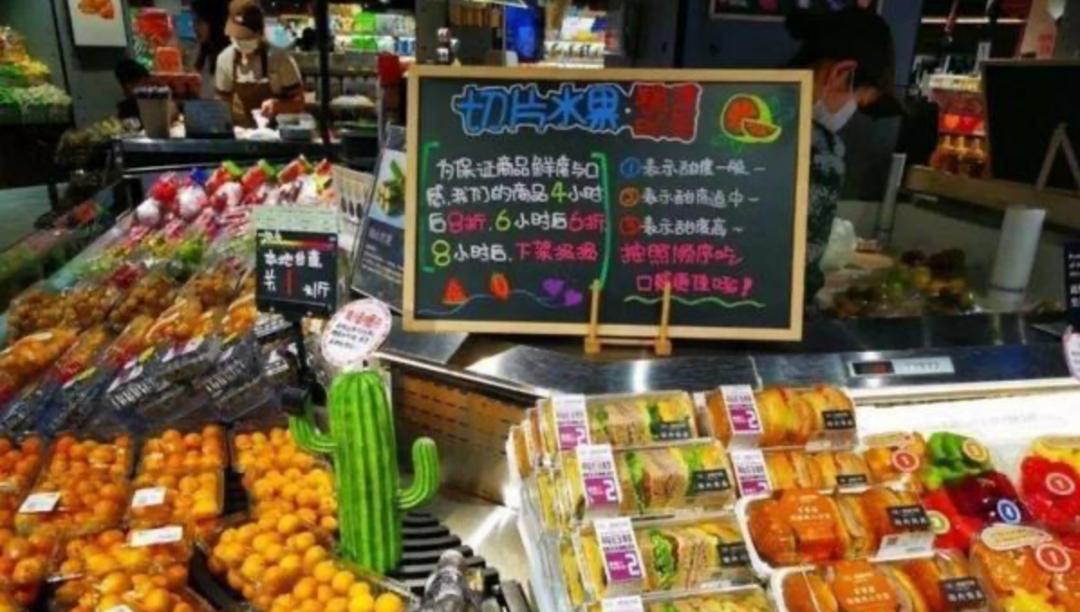 在这里,顾客可以享受100多项免费的服务。比如,陈列架上有详尽的商品说明,还专门列出海鲜等物品的各种吃法、个别食物的禁忌等。高档海鲜可以免费加工,平价海鲜可以挑除虾线。顾客买面粉,如果不知道是选择高筋面粉还是低筋面粉,旁边会有选择指南。就连用手难搓开的购物袋,也配备了湿手器。需要特别注意新鲜度的生鲜产品,胖东来会精准把控售卖时效。通常,面包、肉类的保质期只有一天;水果如果切开4小时以上,则8折出售,6小时6折,超过8小时就会下架处理。