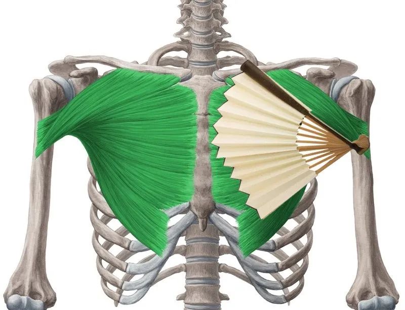 绿色部分为胸大肌,肌肉走向与右侧折扇类似 | kenhub