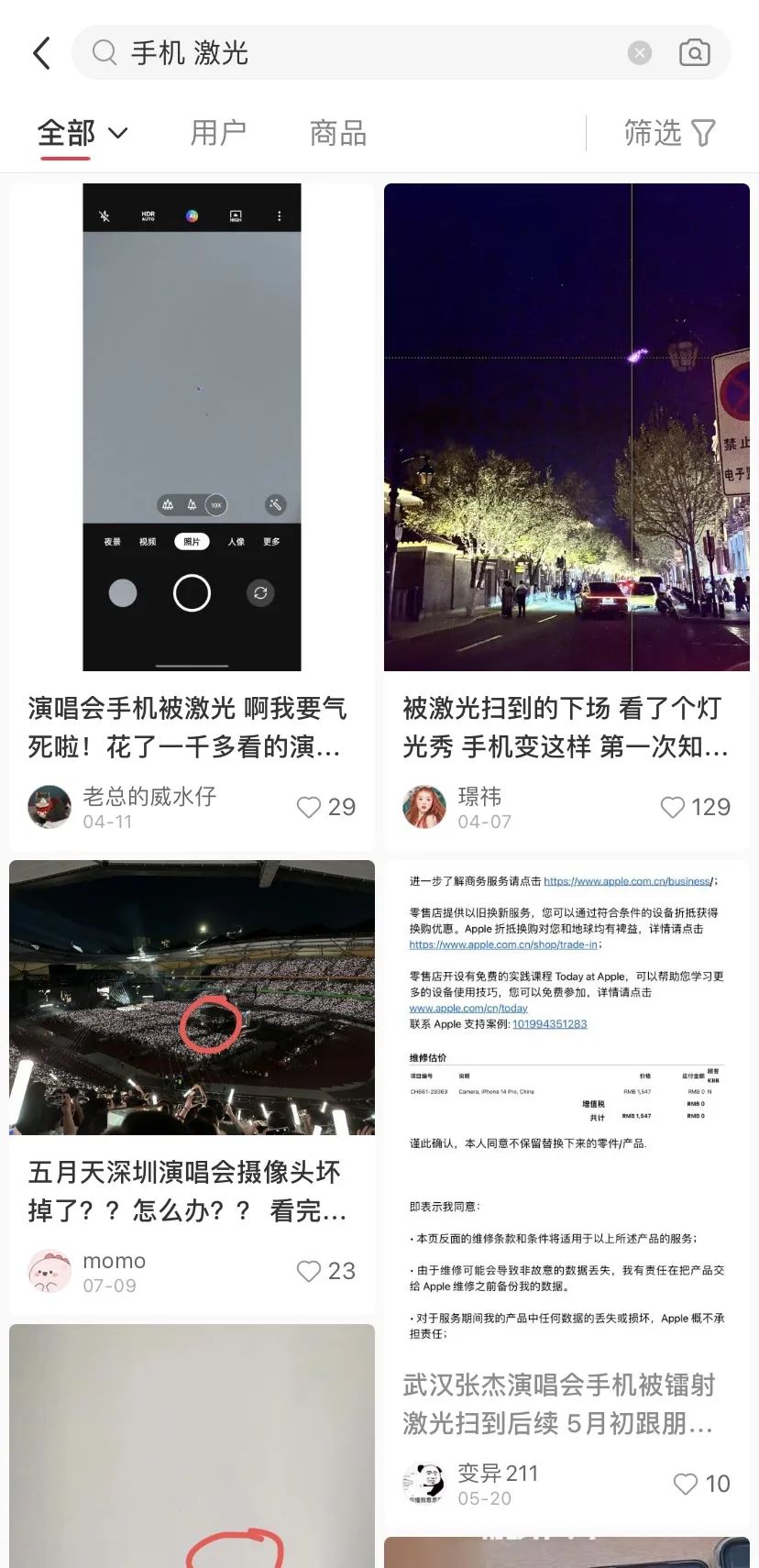 手机上的摄像头也逃不过这一劫。去社交软件上搜索“手机”、“激光”,就能看到众多的维修“惨案”。这种损坏只能通过更换手机内部的传感器元件进行维修,费用大多超过1000元。
