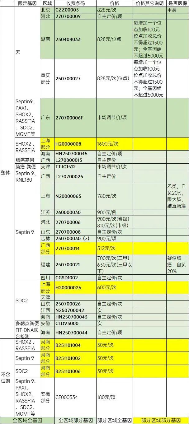 目前,有16个省市都对甲基化产品的收费和医保情况做出了相关确认,其中只有北京、河北、湖南、广东实现了不限基因不限医院的甲基化收费,给行业增添了变数。