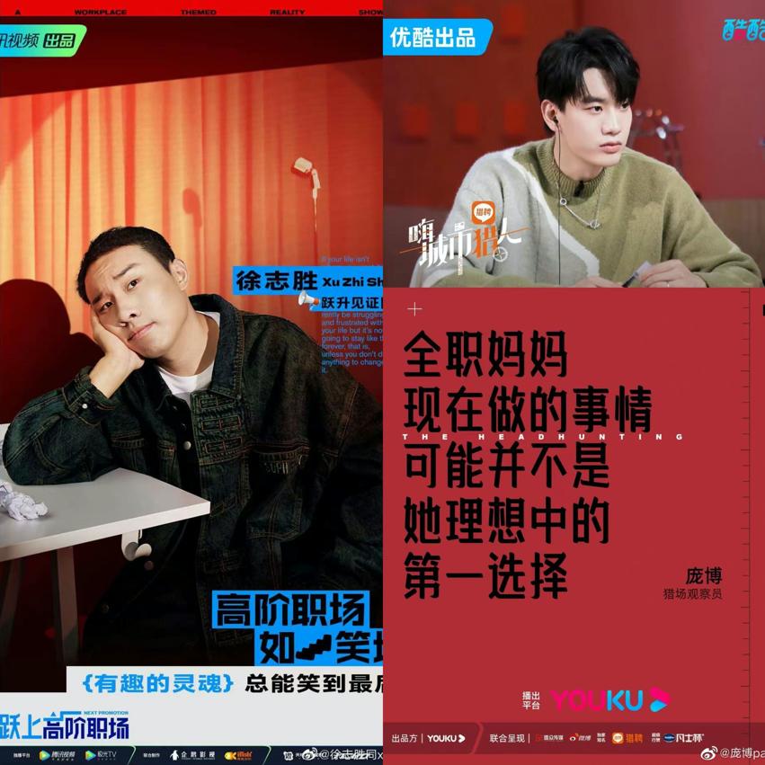 毕业于哥伦比亚大学、在美国从事过金融行业的呼兰在江苏卫视的《闪闪发光的你》中担任“成长见证官”;李雪琴在《令人心动的offer第二季》担任过飞行嘉宾,到了第四季则直接晋升成固定“加油团”成员;庞博在优酷的猎头职场观察真人秀《嗨,城市猎人》中与杨天真、杜华共同组成“猎场观察团”;徐志胜在《跃上高阶职场》中与《奇葩说》的陈铭共同担任“跃升见证人”;程璐、赵晓卉则主持了腾讯视频的《打工不如打电话》,吐槽打工的烦恼。