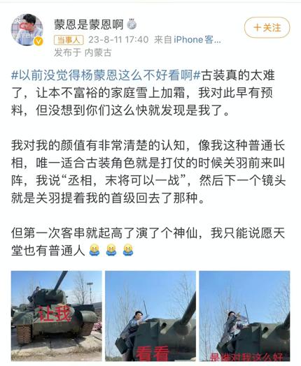相比对待杨笠的网开一面,网友对于杨蒙恩演的神仙更是严格审视的态度,剧集开播第二天,“以前没觉得杨蒙恩这么不好看啊”话题就被顶上热搜。杨蒙恩更是发微博自我调侃长相普通,只适合演小兵,演古装只能是“雪上加霜”。无独有偶,在《脱口秀大会》上自称是“全网最后一个大帅哥”的新星徐志胜,在连续登上央视和各大卫视春晚后,还客串了电影《独行月球》和《交换人生》。《脱口秀大会第三季》冠军王勉则在《我在他乡挺好的》《女士的品格》《平凡之路》等剧中都有参演。