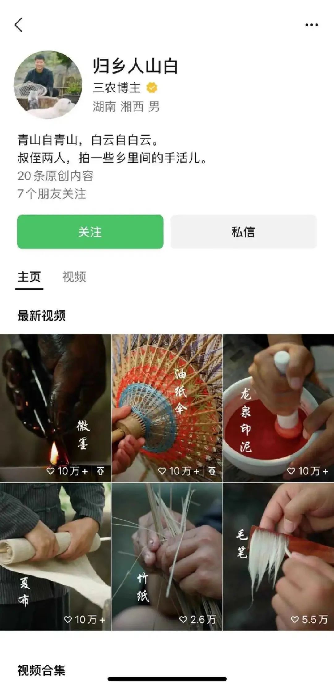 7 月 10 日的时候, @山白 出了第一个爆款视频《古法徽墨》,该视频在抖音获得了 928 万点赞,还被官方媒体点名夸赞,不少媒体慕名登门采访。