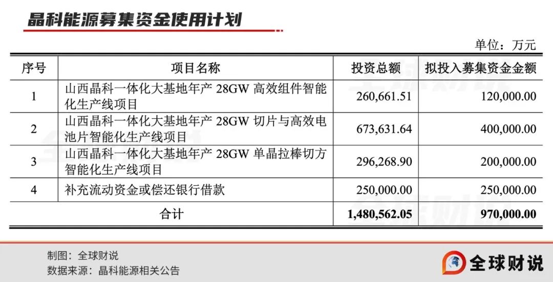 超500亿元的产投项目,难怪手握百亿资金的晶科能源又要定增融资了。