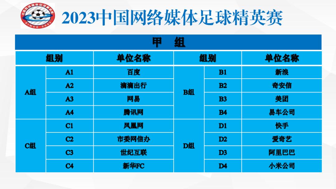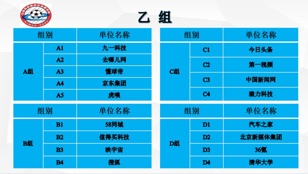 本届赛事共邀请33支足球队参赛,分为甲、乙两个大组进行比赛,参赛球队有:新华FC、中国新闻网、清华大学、新浪、搜狐、百度、网易、凤凰网、腾讯网、京东集团、爱奇艺、58同城、滴滴出行、快手、美团、奇安信、今日头条、阿里巴巴、北京新媒体集团、小米公司、易车公司、汽车之家、九一科技、映宇宙集团、36氪、虎嗅、猿力科技、世纪互联、懂球帝、去哪儿网、第一视频、值得买科技、市委网信办,其中清华大学和虎嗅为首次参赛。