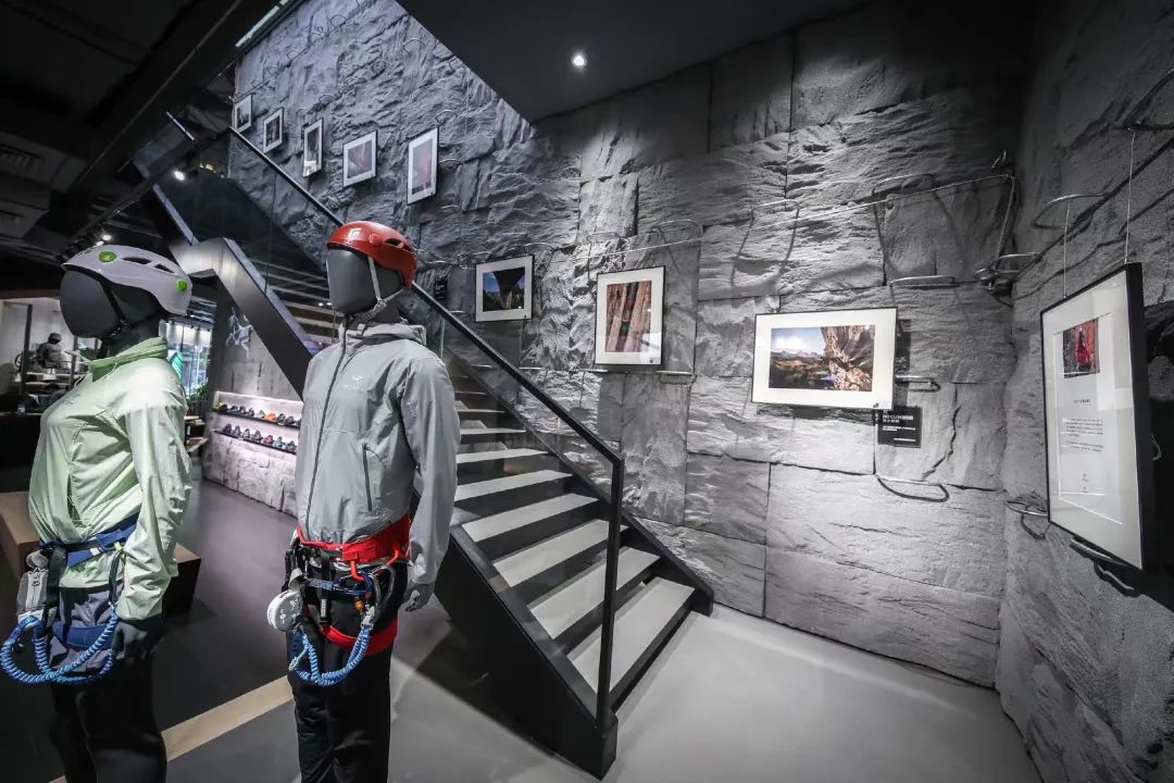 2020 年 9月 19 日,这家店顶着“全球最大旗舰店”的名号开业,当天还官宣了超模刘雯成为品牌全球首位代言人。店铺面积 736 平,邻居是爱马仕、卡地亚等一众奢侈品品牌。店内不仅陈列始祖鸟的产品,还设置了互动体验空间和会员专属活动区域。不仅在门店设计中融入岩石墙壁、攀岩索道等元素,还在中国市场首次引入以会员社区为概念的 ARCTERYX ACADEMY ,每周定期举办会员体验活动。