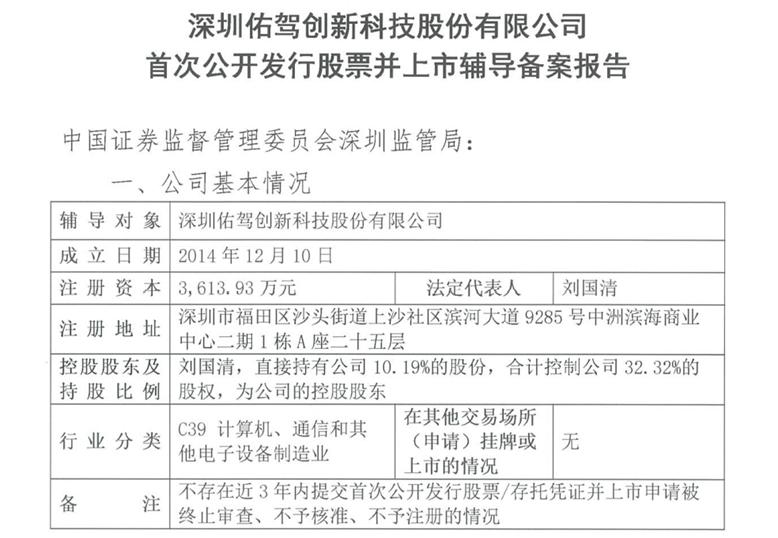 8月9日,深圳佑驾创新科技股份有限公司(简称:佑驾创新,英文名:MINIEYE)的上市辅导备案获证监局登记受理,辅导机构为国泰君安证券。