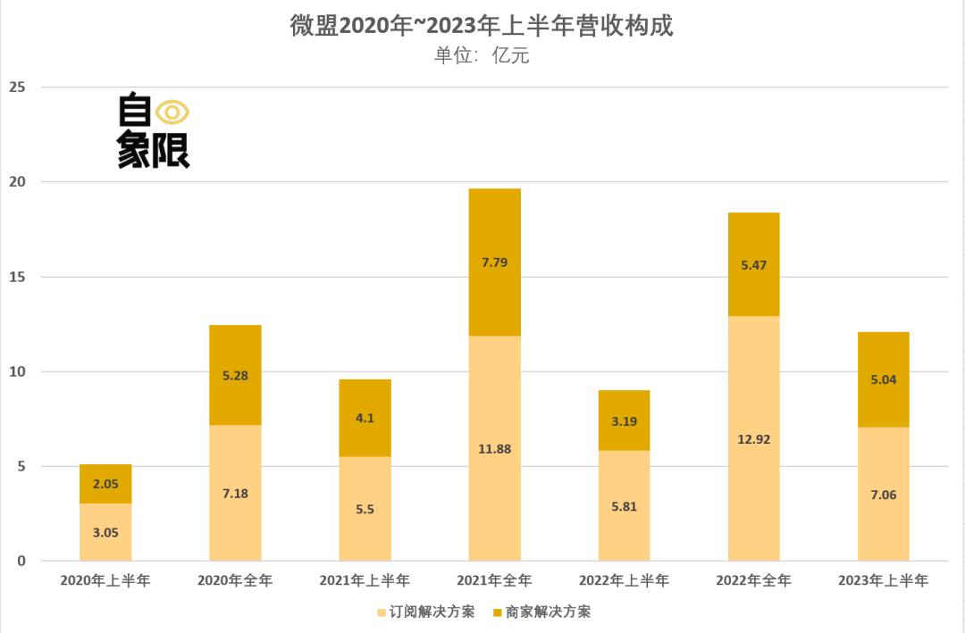 今年宏观环境向好之后带来的高速增长,对比去年的落差,给人带来微盟营收突飞猛进的印象。微盟自己也在财报中提到,收入增长主要是因为宏观经济复苏,以至于商家订阅、解决方案广告需求显著反弹。
