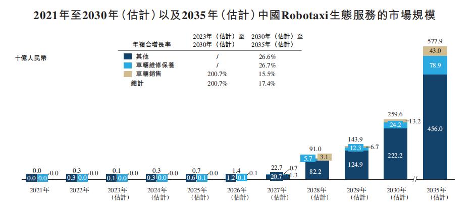2021-2035年中国Robotaxi生态服务市场规模预测,图源如祺出行招股书