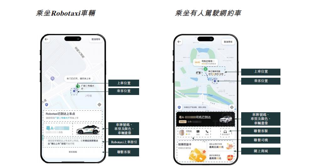 在Robotaxi业务的具体落地上,如祺出行选择了混合运营的路线。简单说,就是在如祺出行平台上同时运营有人网约车和Robotaxi车辆,在去年10月之后,广州市南沙区全域的消费者通过该品牌平台打车,这两种车型都有可能打到。