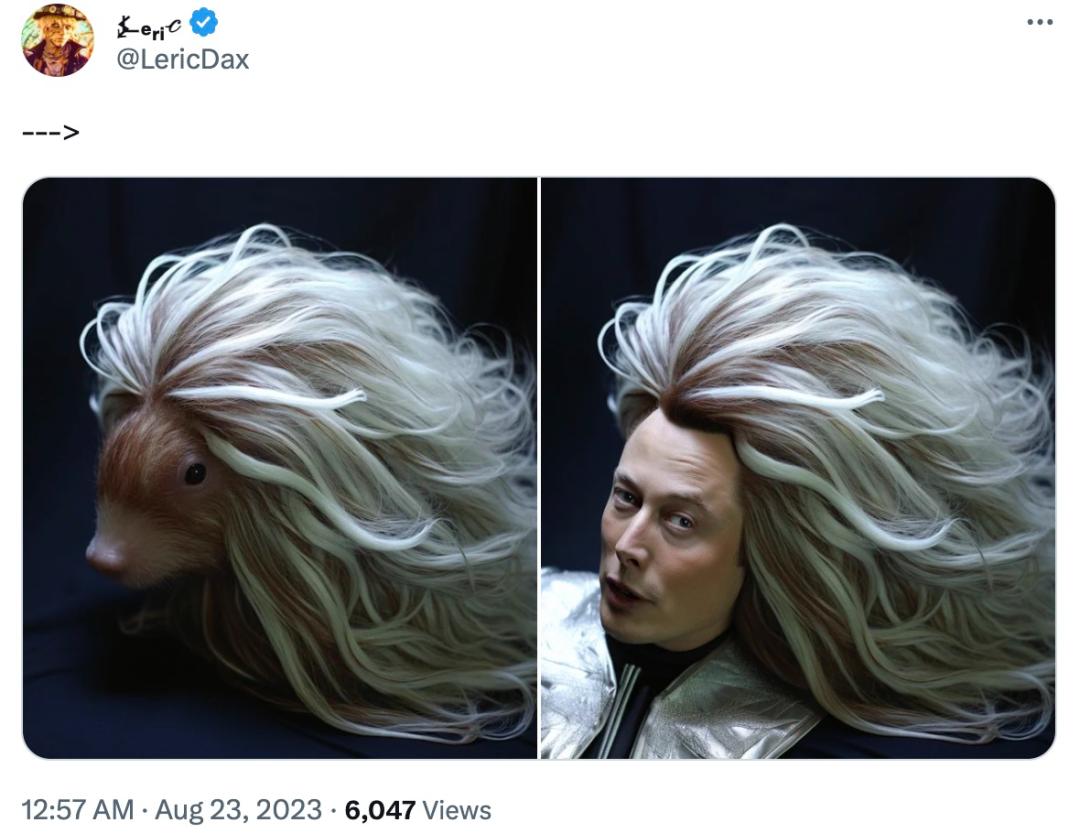 还有网友脑洞大开,让马斯克「长出」满头白发: