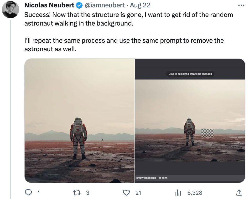 看来,Midjourney 的新功能 Inpainting 还有一些要改进的地方,取代 Photoshop 还需要一些时间。
