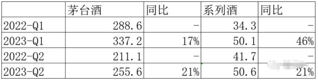 上半年茅台酒和系列酒的增幅看似都不错,但细拆到单个季度可以发现,茅台酒的增幅稳健,而系列酒的增幅却出现下滑趋势。一季度茅台酒营收337.2亿元,同比增幅17%,二季度茅台酒营收为255.6亿元,同比增幅提升至21%。而系列酒在一季度营收50.1亿,同比增幅46%,二季度营收50.6亿,同比增长 21%,增长幅度下滑严重,腰斩有余。