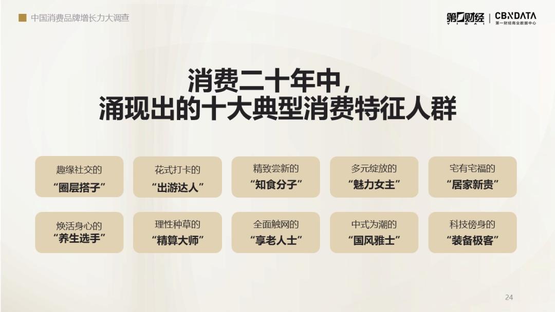 近期,第一财经、第一财经商业数据中心(CBNData)发布《中国消费二十年洞察系列报告-人群篇》(下称《报告》),通过回顾关键时代阶段及消费趋势演变,帮助品牌了解新周期下典型特征人群的消费心理与习惯。