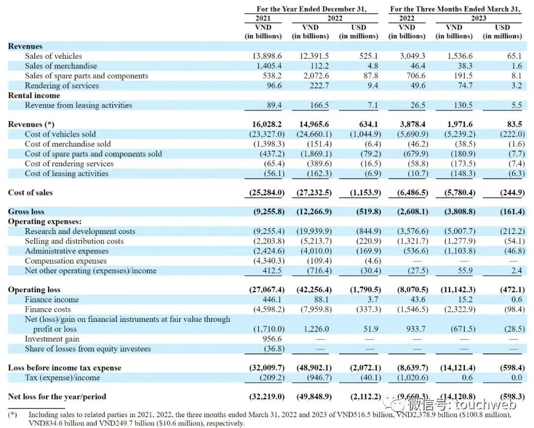 VinFast在2023年第一季度营收为8354万美元,运营亏损为4.72亿美元,净亏损为6亿美元。