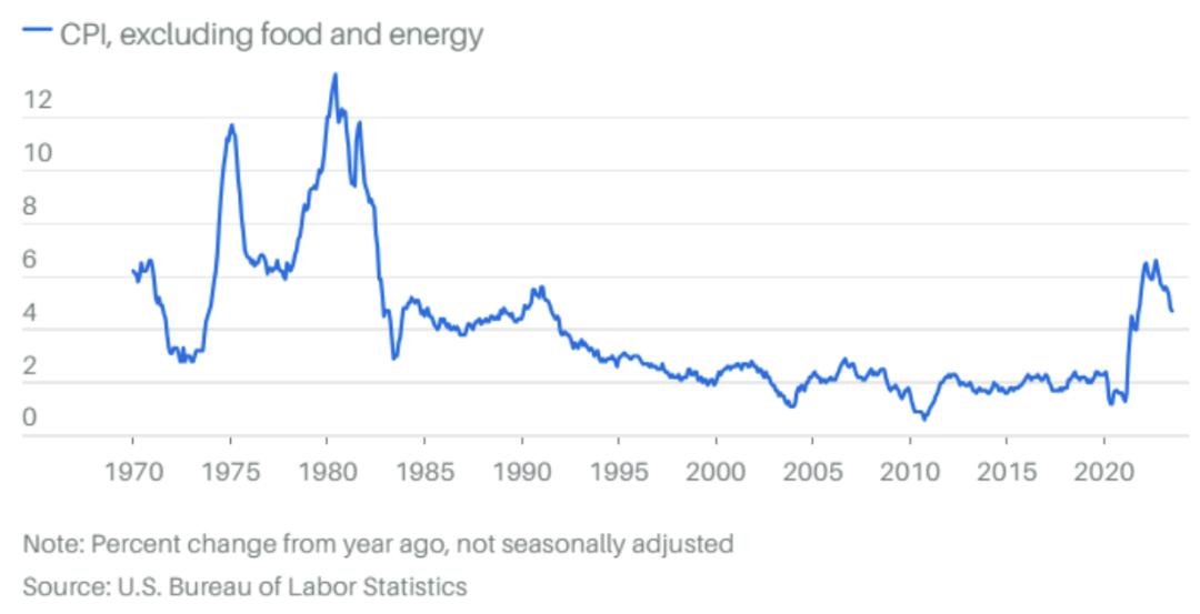 核心通胀已从近期峰值回落,但仍高于美联储2%的目标