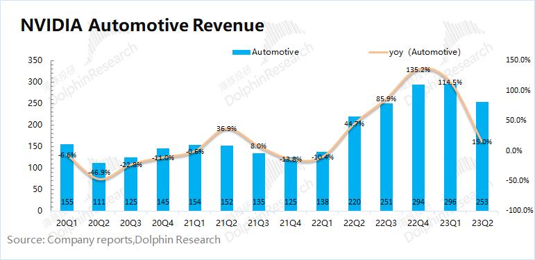 2.3 汽车业务:2024财年第二季度英伟达汽车业务实现营收2.53亿美元,同比增长15%,这些增长主要来自于自动驾驶和人工智能驾驶舱解决方案的收入。