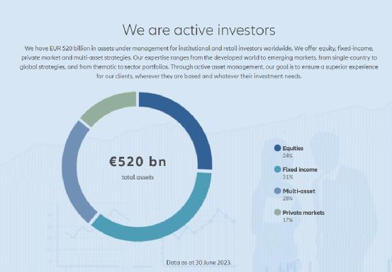 截至2023年6月30日,安联投资为全球机构和零售客户管理资产总值达5200亿欧元(折合人民币约4.11万亿元)。其中,固定收益资产占比31%,多元资产占比28%,股票资产占比24%,私募市场资产占比17%。