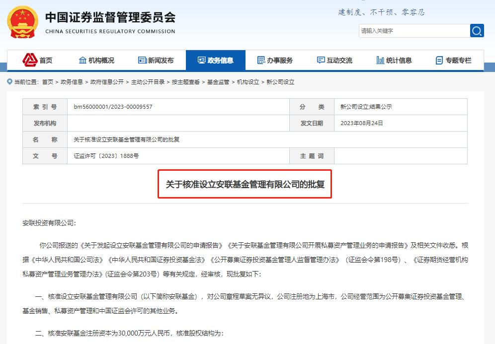 8月24日,证监会官方发布公告,安联投资发起设立的安联基金管理有限公司(以下简称安联基金),已经获得证监会核准设立的批复,对公司章程草案无异议,公司注册地为上海市,公司经营范围为公开募集证券投资基金管理、基金销售、私募资产管理和中国证监会许可的其他业务。