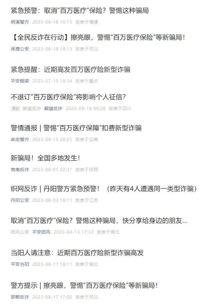 近期多地警方发布“百万医疗保险”骗局反诈提醒
