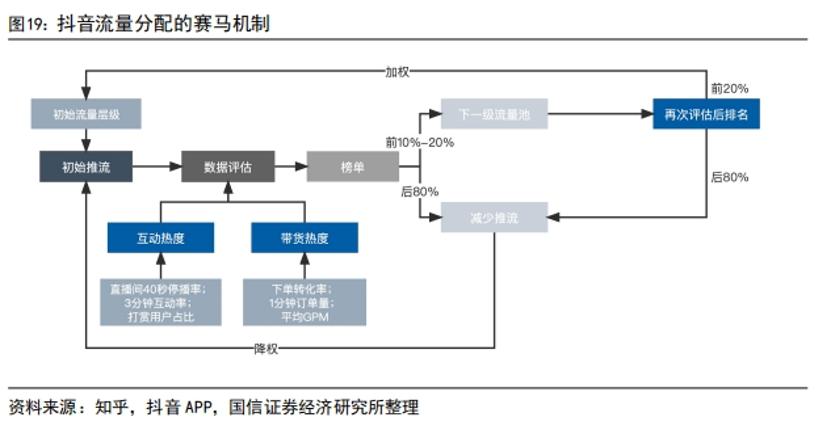 对此,国信证券6月份的深度报告分析指出,抖音的流量分配更加“重算法、轻用户”,所有直播均需服从算法优先原则,具体的流量分配机制遵循“赛马机制”+评分定时归零的规则。