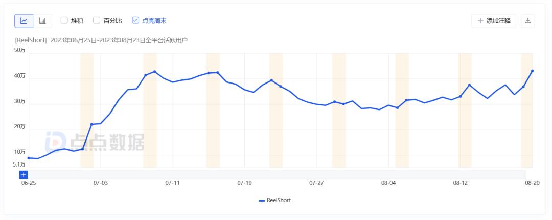 Reelshort 全球日活变化趋势| 图源:点点数据