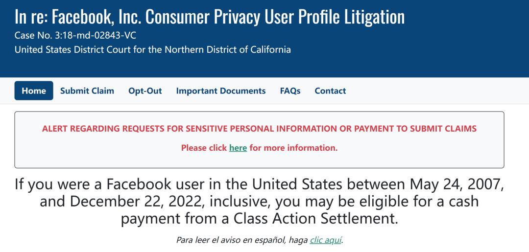 而截至今日,留给 Facebook 用户申请瓜分这笔 7.25 亿美元巨额赔偿的时间已经不多了:申请索赔的截止时间,是太平洋时间 2023 年 8 月 25 日晚 23:59。