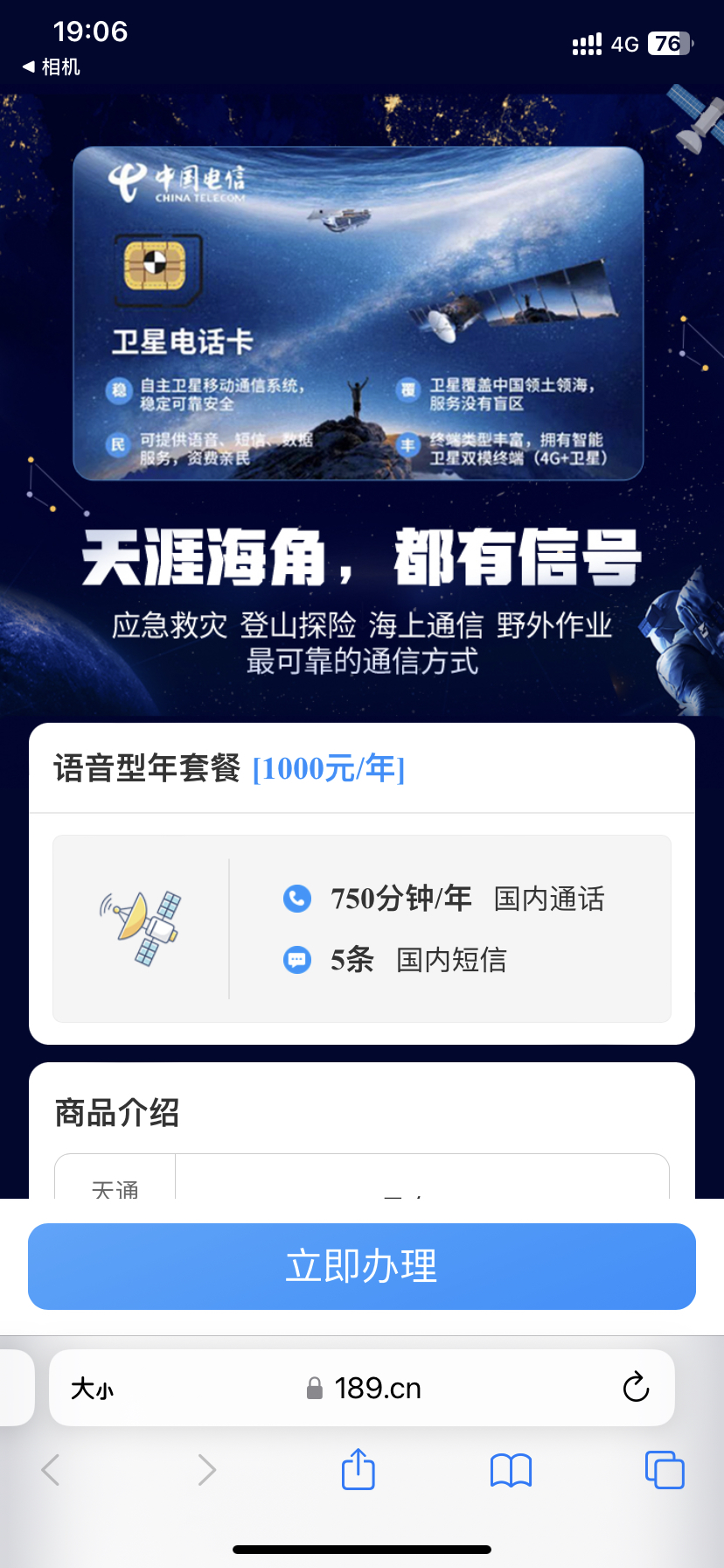 具体的通讯资费,以中国电信销售的卫星电话卡为例,年费1000元,包含750分钟语音和5条短信。这个价格自然比常规的号卡资费贵多了,但显然卫星电话是有特殊的使用场景的,几乎没有人会把它当常规手机卡那么用。一般来说,远航渔船、地质探险等相对极端的场景下,地面运营商基站信号没有覆盖的地方,才会有配置卫星电话的需求。