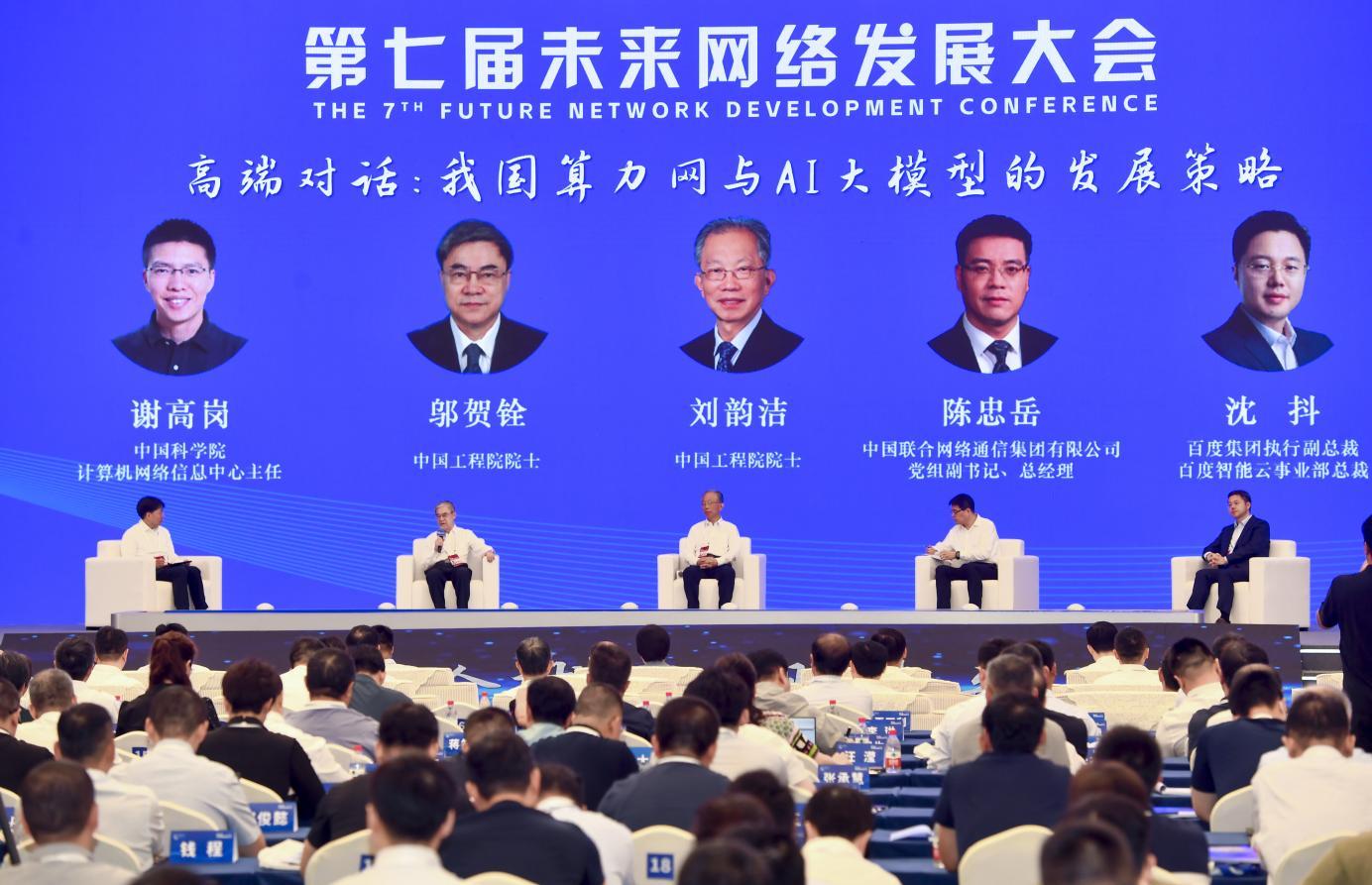 为进一步把握当前世界未来网络技术的前沿发展动态和未来发展趋势,本届大会凝聚多方智慧,邀请顶级专家大咖齐聚一堂,围绕未来网络技术创新分享真知灼见,贡献智慧成果。在高端对话环节,大会邀请中国工程院院士邬贺铨、刘韵洁,中国联通总经理陈忠岳、百度集团执行副总裁沈抖围绕“我国算力网与AI大模型的发展策略”这一主题展开高端对话,从行业专家到业界精英,从不同视角探讨我国算力网络、人工智能大模型的发展现状,为我国算力基础设施建设把脉定向,建言献策。