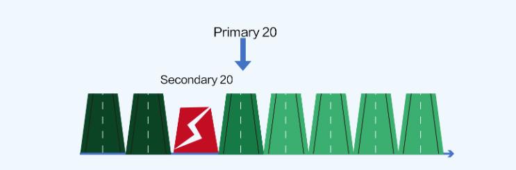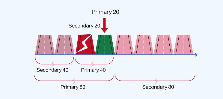 主信道 20MHz 和 20MHz 组合:20MHz(主)+ 20MHz(辅);