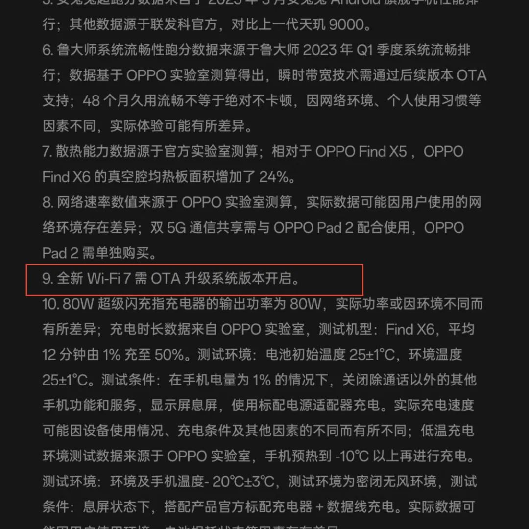 其实,目前判断一台手机是否支持 Wi-Fi 7 协议很简单,如果手机 SoC 是高通骁龙 8 Gen2 或联发科天玑 9200 以上,则是支持 Wi-Fi 7 协议的,不过可能需要 OTA 升级系统版本。
