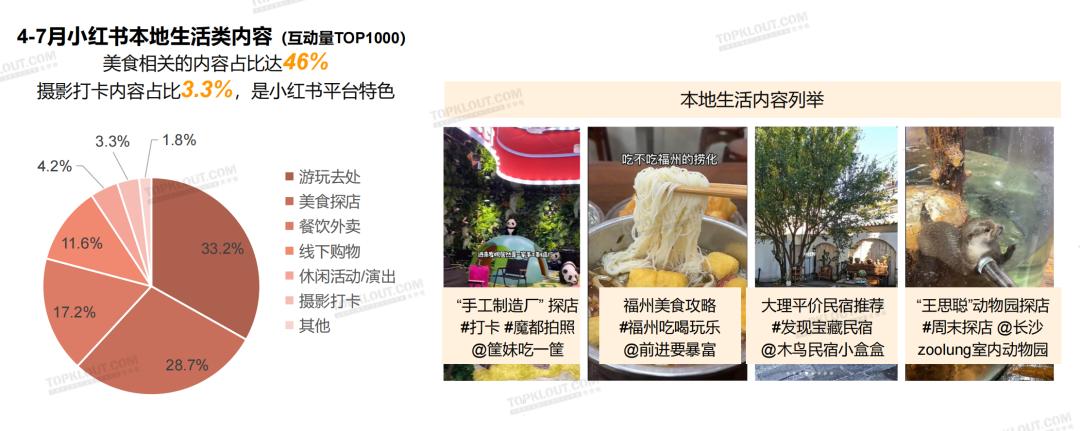 小红书4—7月的本地生活内容中,美食相关的内容占比达46%,摄影打卡内容成为了平台的特色。吃喝玩乐之余,“拍得好看”也是小红书用户的重要需求。