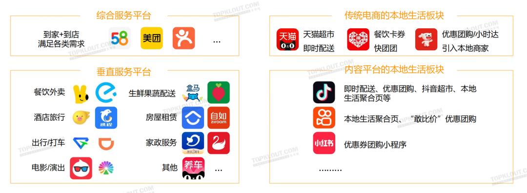 从平台的角度来看,传统的综合服务平台和垂直服务类平台正在进行内容化布局,不断培养和引入内容达人,增加直播业务。而内容平台与电商平台则快速开放本地商家合作政策、深化基础服务能力的搭建,不断丰富站内的本地商家,增加更多服务类型。