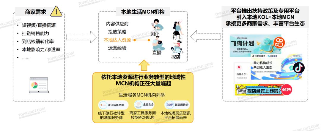 平台侧,社交平台花式参与线下活动,将自身融入线下场景之中,从而增加营销话题。 与此同时,为了更好的满足商家营销需求,社交平台着力扶持本地达人及本地MCN机构,涌现更多地域性机构。