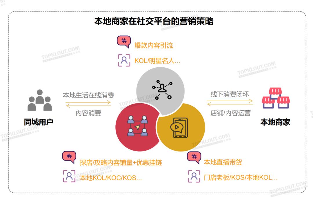 社交平台依托于内容营销优势及用户优势加码本地赛道,逐渐形成了自身的特征与优势,与综合服务平台形成了较为明显的差异。