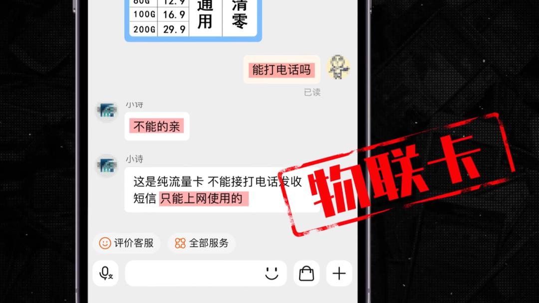 所以买流量卡之前一定要问客服,这卡能不能打电话,只要不能打电话,咱们就长个心眼,这东西大概率是物联卡。