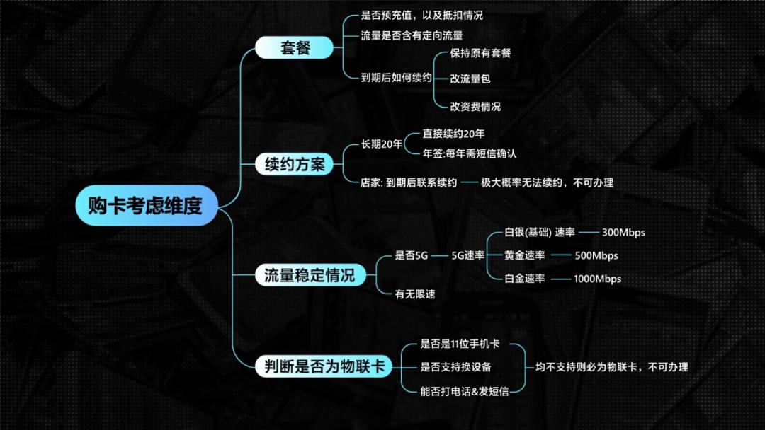 买之前一定要充分了解产品,不要相信店铺的评价,所有店铺的客服基本都会有各种的话术,很容易就能把你绕晕。但咱们一定要清醒,可以参考我们买卡时的计算方式,一定算清楚每月到底要花多少钱,套餐能用多长时间。我们也列了一些需要考察的维度,供大家参考。