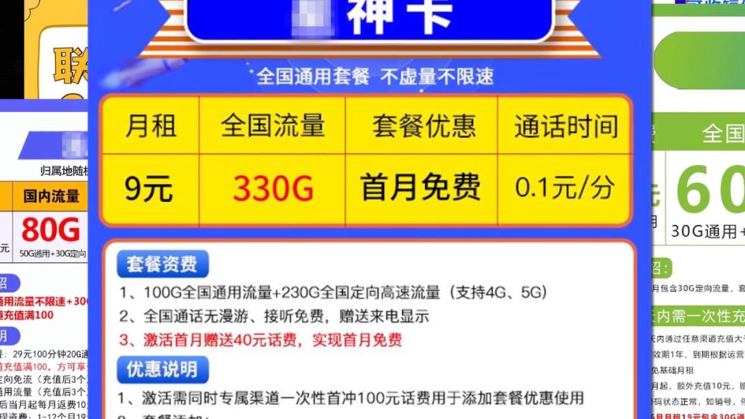 拿我亲身经历来说,我曾在网上买过一张,宣传是9块钱330G的卡。