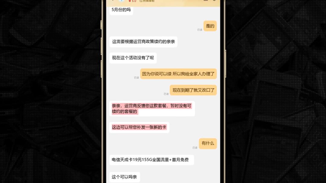 其实我对优惠期结束是有心理准备的,但问题是,我买的时候,客服拍胸脯跟我保证到期可以联系他们免费续约,等优惠到期了,他给我的解决办法是,再办张新卡。
