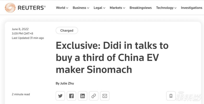 而根据路透社去年6月份的报道,滴滴计划收购电动汽车制造商国机智骏1/3的股份,消息人士透露,这一收购金额将达到10亿元人民币,交易时间最早或将于当月底敲定。