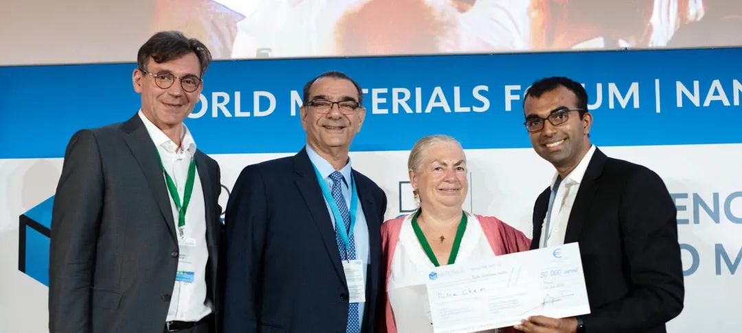Vivas Kumar(右一)创建的 Mitra Chem 获得世界材料论坛创业组大赛|Mitra Chem
