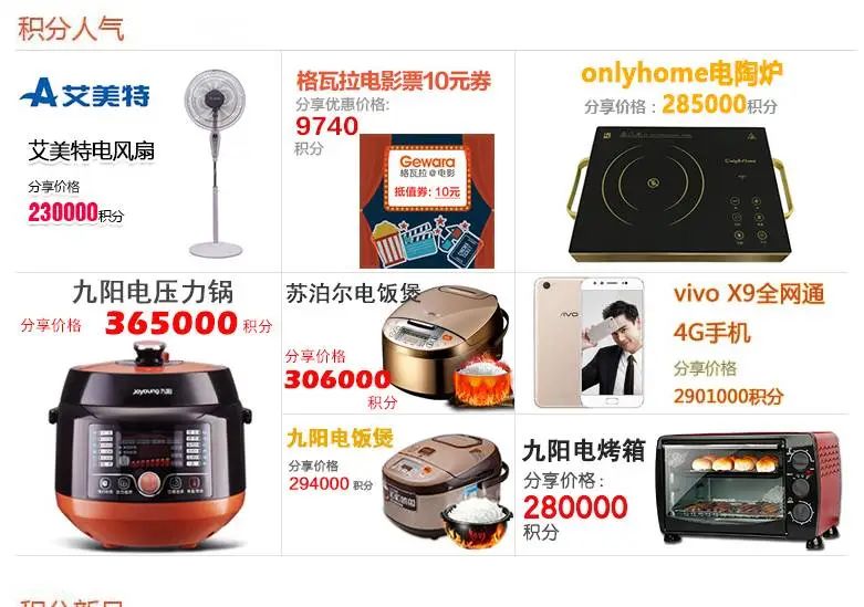 我记得里面的积分兑换产品:购物卡200元,50积分;电影票 30积分;.....