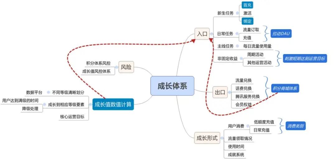 整个用户体系涉及:入口、出口、风险、成长形式、成长值数值计算五大落地方向。