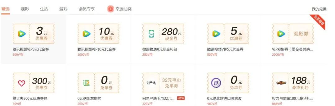 腾讯视频的积分兑换