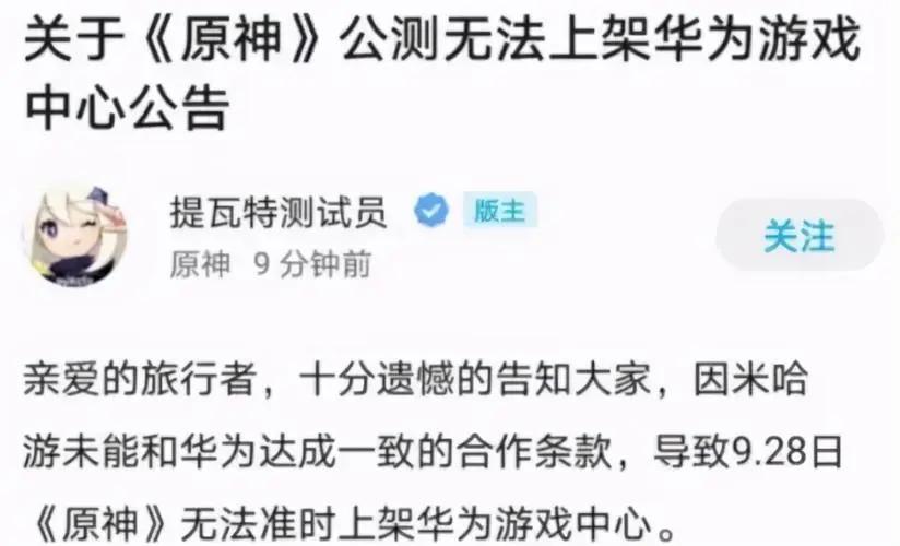 而到了《原神》公测时,米哈游却发布公告称,因未能和华为和小米达成合作条款,将不上线这两个主流安卓平台,对外态度相当硬气。此外,除TapTap和B站之外,游戏也没有上线任何安卓渠道。