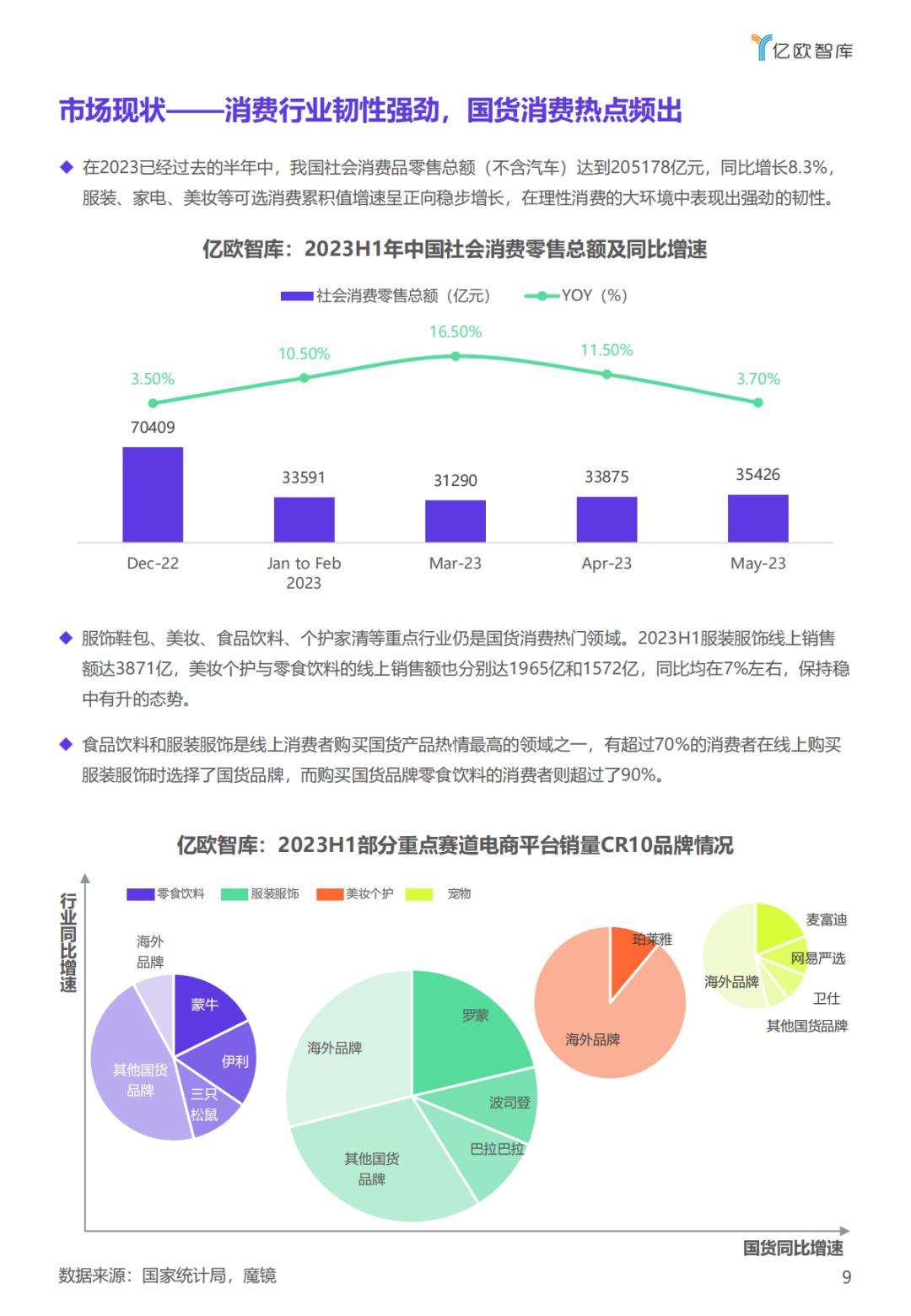 在2023已经过去的半年中,我国社会消费品零售总额(不含汽车)达到205178亿元,同比增长8.3%,服装、家电、美妆等可选消费累积值增速呈正向稳步增长,在理性消费的大环境中表现出强劲的韧性。